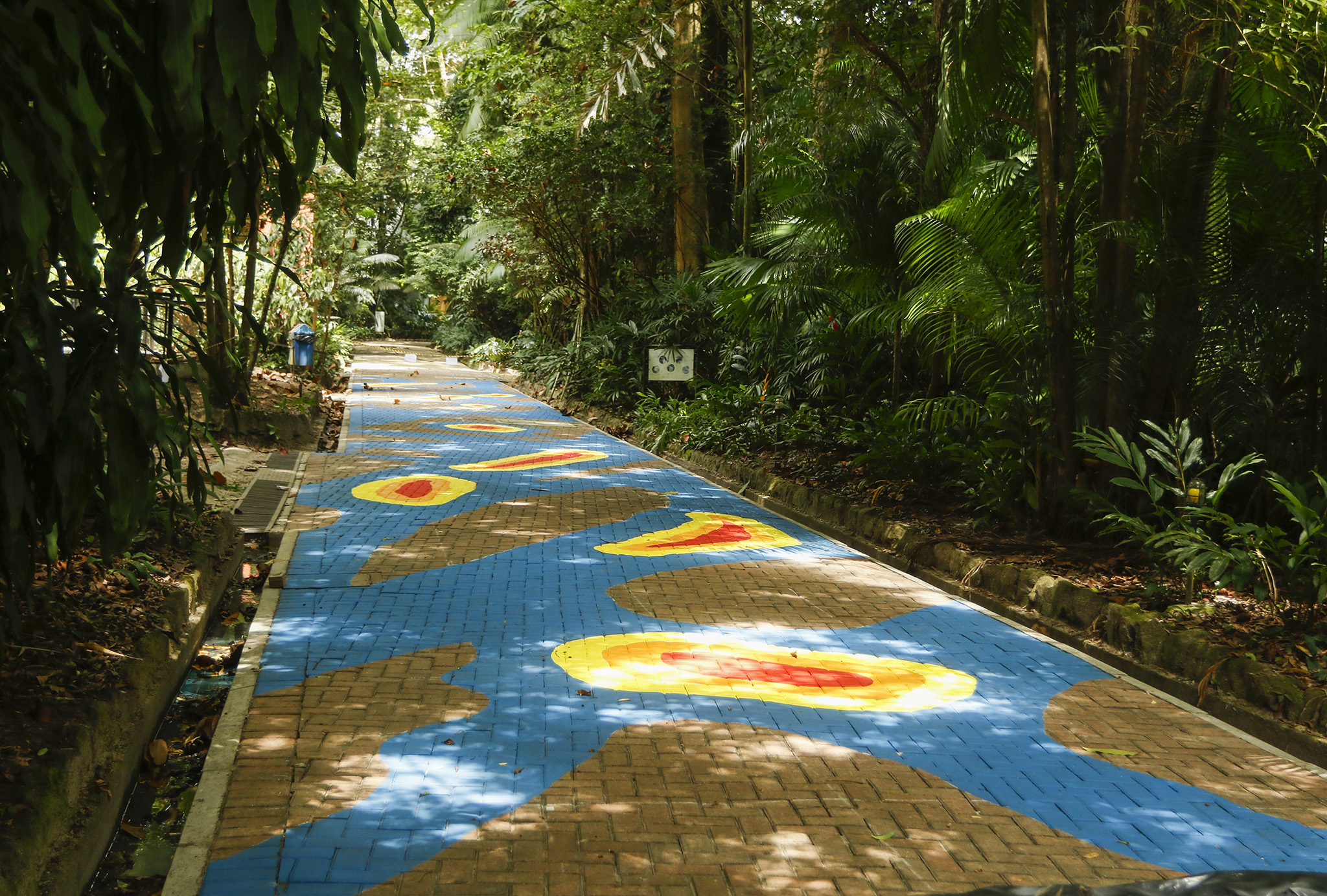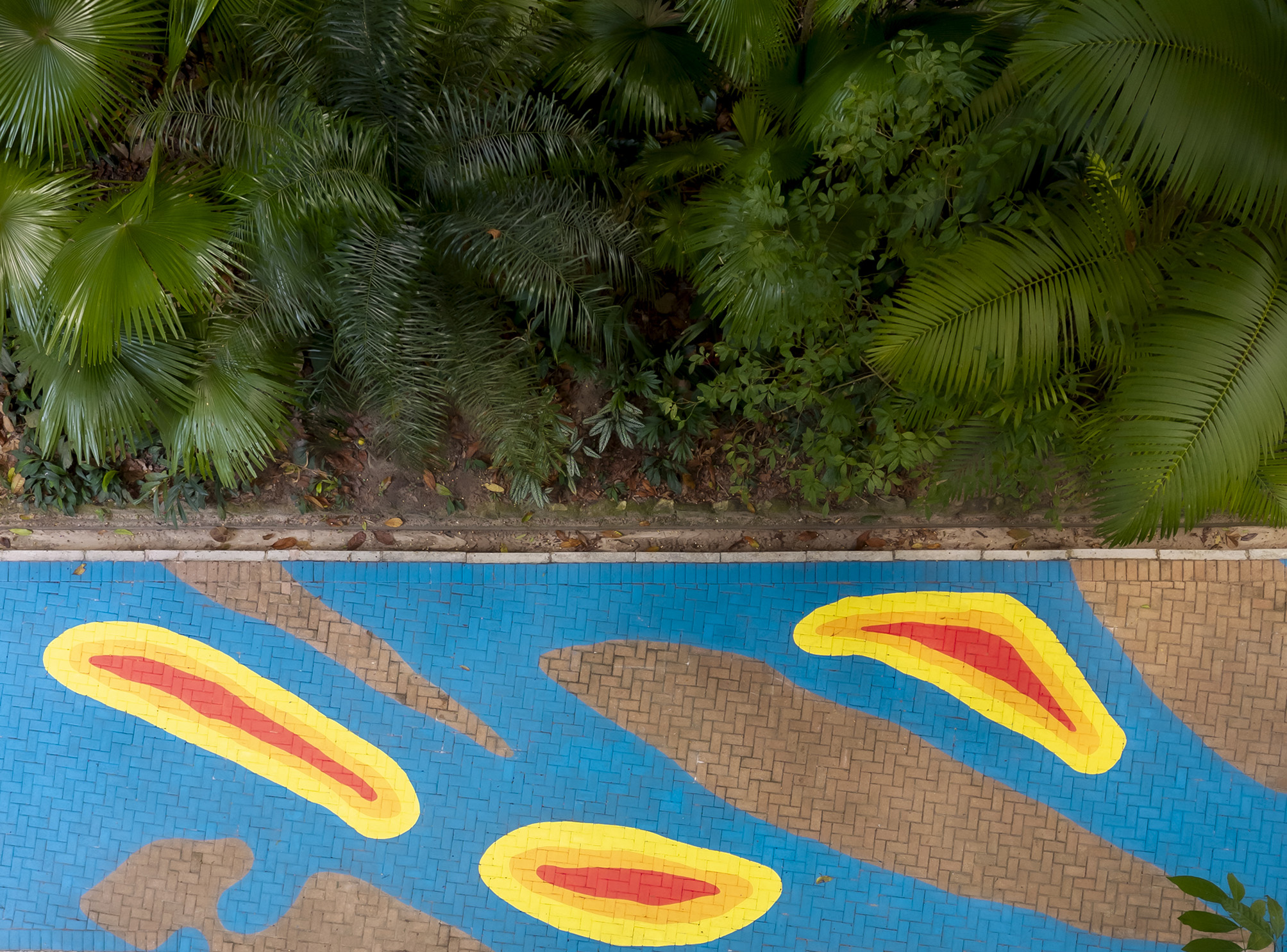 Based on the analysis of satellite imagery and dialogues with scientists, the work adapts the course of the Tefé River onto the pavement of the Emílio Goeldi Zoobotanical Park, creating thermal representations of heat islands through the use of warm colors. This site-specific installation functions simultaneously as a reminder and a warning: rivers are sensitive witnesses to climate change, and we are increasingly close to experiencing irreversible damage.